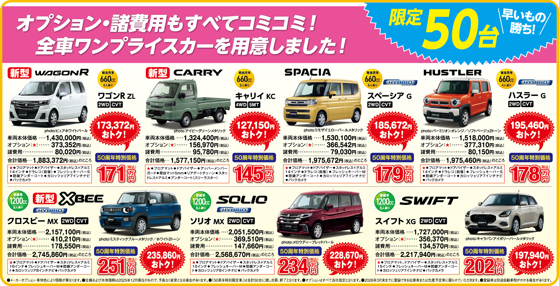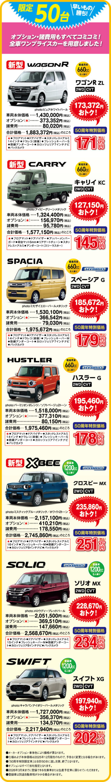 50周年を記念した特別仕様車・厳選7車種・限定50台!!
